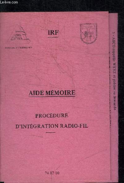 AIDE MEMOIRE - PROCEDURE D'INTEGRATION RADIO-FIL | Libri antichi e moderni | Collectif