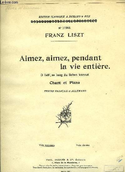 AIMEZ, AIMEZ, PENDANT LA VIE ENTIERE (O LIEB', SO LANG DU LIEBEN KANNST) | Libri antichi e moderni | Liszt Franz