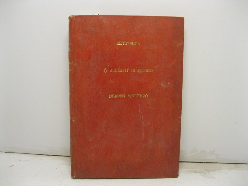 In 8, pp. (4) + 116. Cart. coeva rossa con dedica in oro ad un premiato. Oltre all'orazione sono contenute le rime In morte di Amaritte. L'orazione fu pubblicata nel 1800. Cfr. Gamba, 2631.