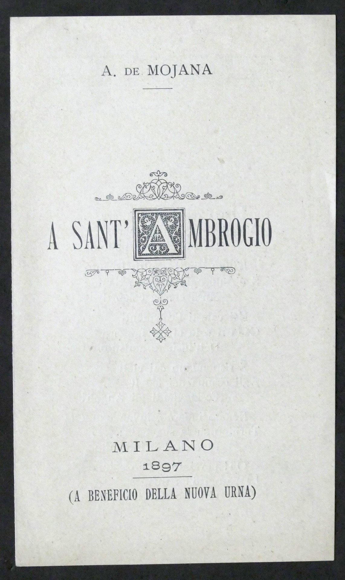 Alberto de Mojana - A Sant'Ambrogio - Milano - 1897 - Sonetto | Libri antichi e moderni |