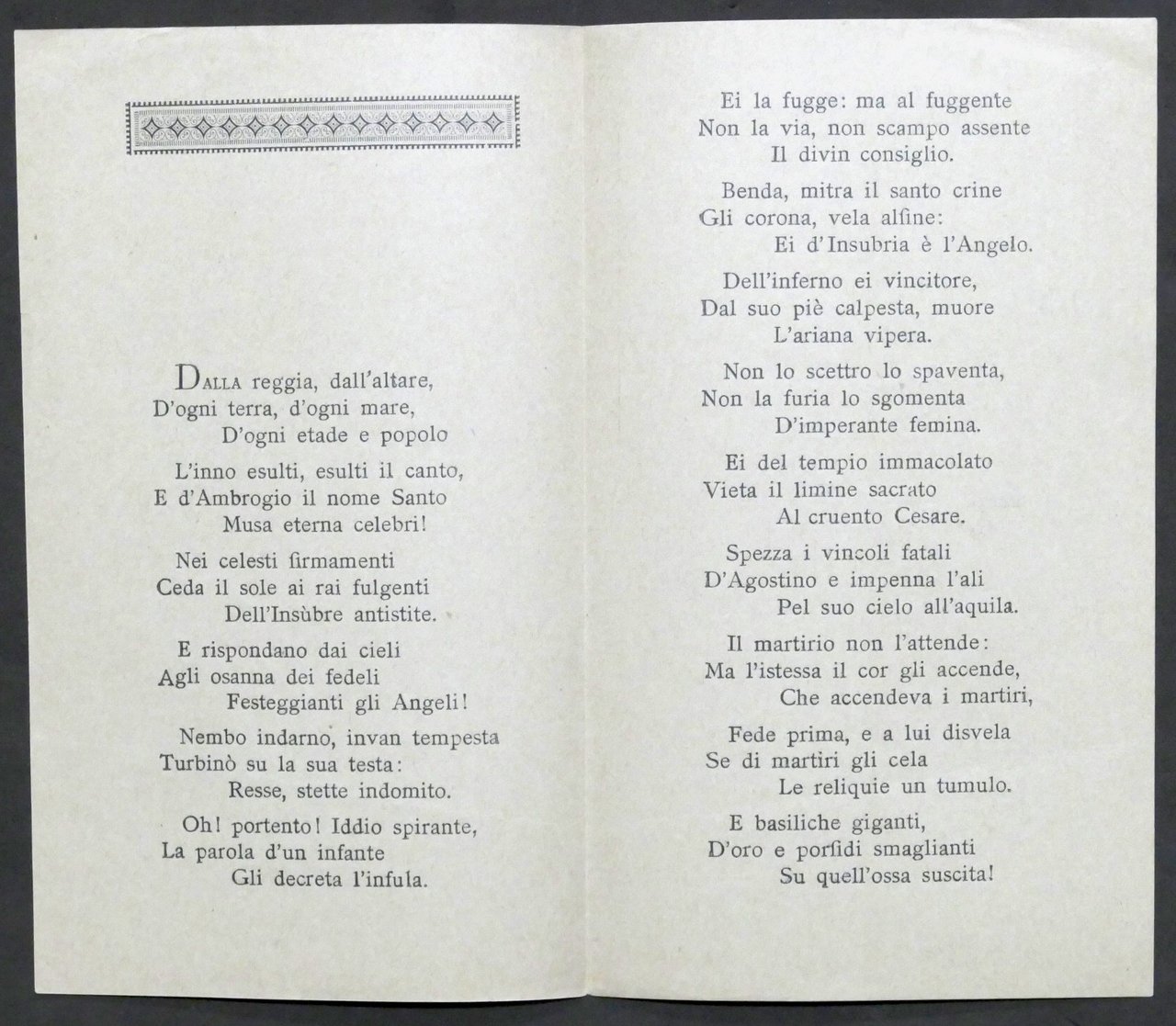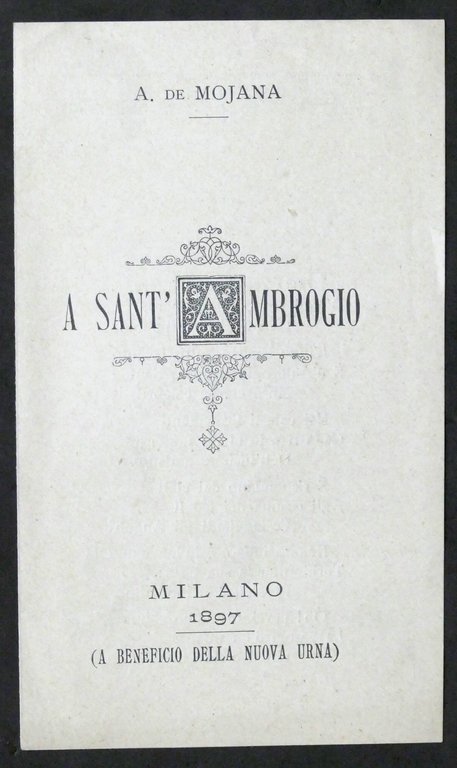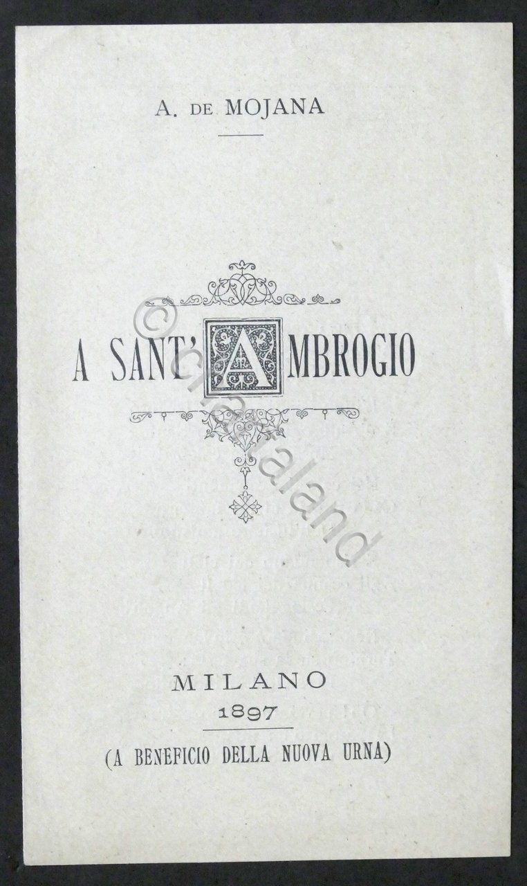 Alberto de Mojana - A Sant'Ambrogio - Milano - 1897 - (a beneficio della nuova urna) - Sonetto Pag. 2 Dimensioni: 10 x 17 cm ca. Copertina morbida - Testo in italiano. Buone condizioni generali.