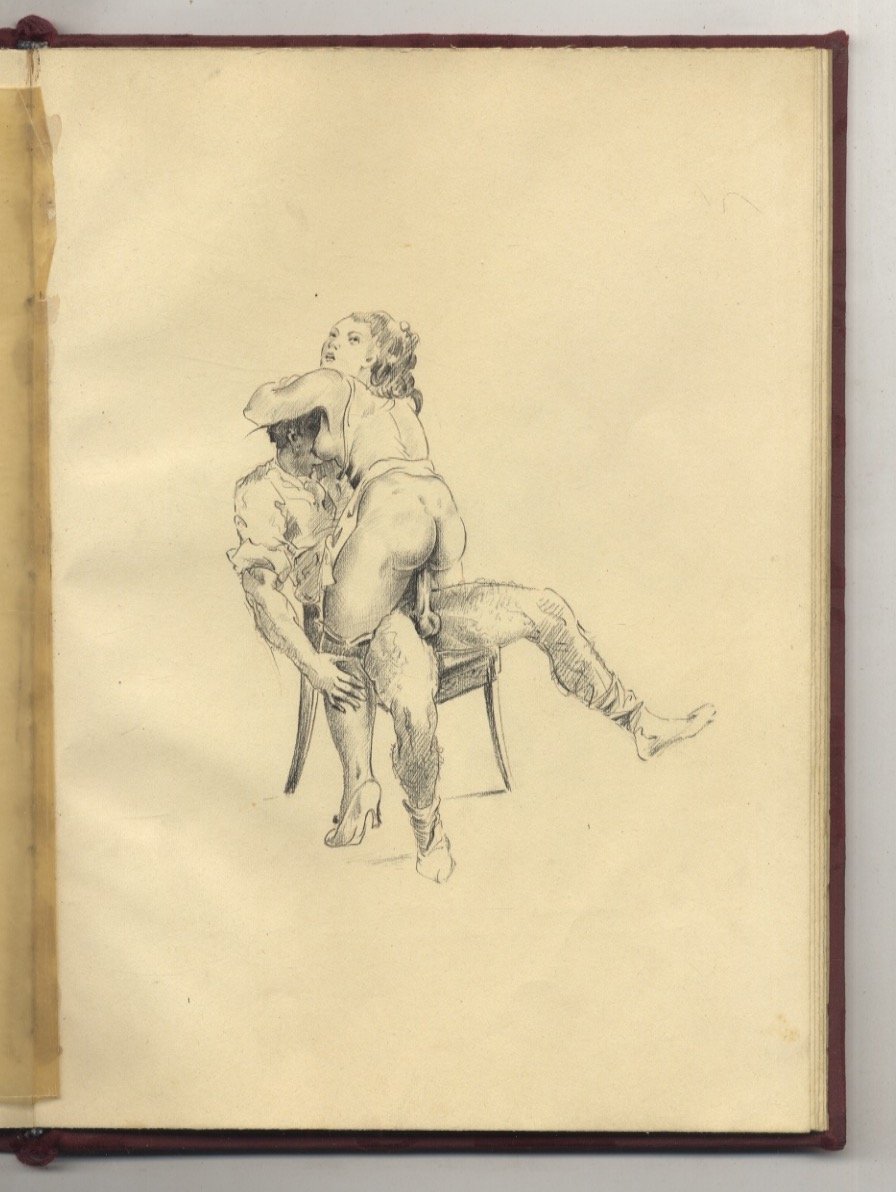 Album contenente 24 disegni originali a matita nera dei quali 23 raffiguranti scene erotiche esplicite.