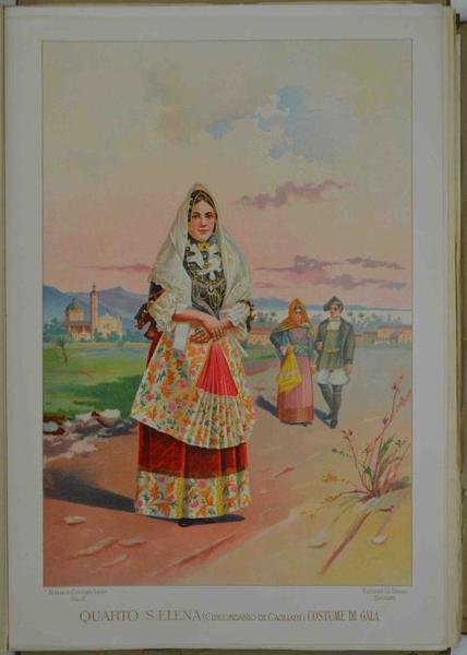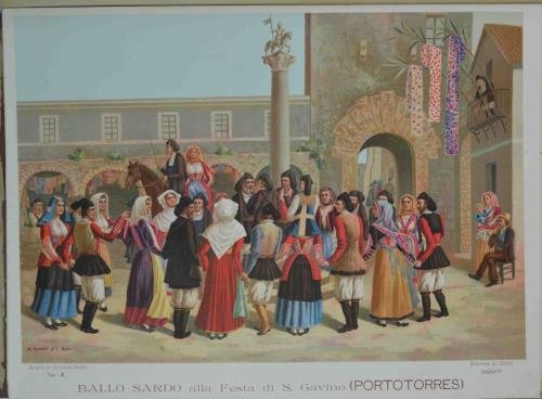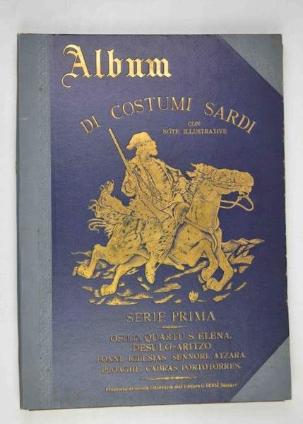 Cartella di cm. 50, contenente 10 dispense di complessive pp. 120 di testo esplicativo. Con 10 tavole a piena pagina magnificamente illustrate in cromolitografia. Ciascuna dispensa è preservata nella bella brossura originale illustrata con al piatto l'immagine di una donna sarda e la carta geografica dell'isola (protetta da velina). Il tutto entro un'elegante cartella editoriale in piena tela blu con titoli e grande figura impressa in oro al piatto. Ottimo stato di conservazione. Elenco dettagliato delle tavole: I: Osilo (Circondario di Sassari). Costume festivo. Un costume femminile. II: Quarto Sant'Elena (Circondario di Cagliari) Costume di gala. Costume femminile. III: Desulo e Aritzo (Circondario di Lanusei) Costume di Gala. Due costumi femminili. IV: Fonni (Circondario di Nuoro) Costume di Gala. Un costume maschile e uno femminile. V: Iglesias , Costume di Massaia antica e Costume di Gala. VI: Sennori (Circondario di Sassari) Costume di Gala. Un costume maschile e uno femminile. VII: Costumi d'Azara (Circondario di Lanusei). Un costume maschile e uno femminile. VIII: Costume di Ploaghe (Circondario di Sassari). Vari costumi femminili e uno maschile. IX: Costume di Cabras. Costume femminile con altre figure sullo sfondo. X: Ballo Sardo alla Festa di S. Gavino (Porto Torres).