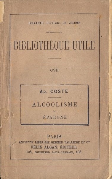 Alcoolisme ou epargne le dilemme social. | Libri antichi e moderni | Coste Adolphe.