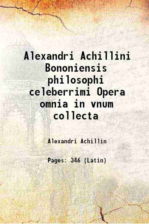 Alexandri Achillini Bononiensis philosophi celeberrimi Opera omnia in vnum collecta 1568