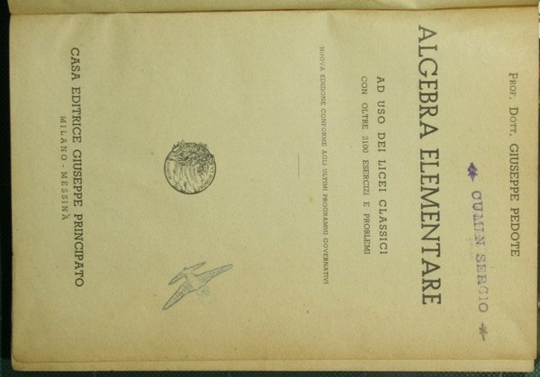Algebra elementare | Libri antichi e moderni | Pedote Giuseppe