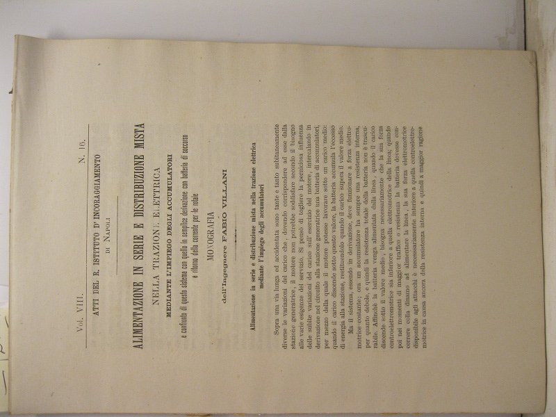 Alimentazione in serie e distribuzione mista nella trazione elettrica mediante l'impiego degli accumulatori e confronto di questo sistema con quello in semplice derivazione con batteria di soccorso e ritorno della corrente per le rotaie | Libri antichi e moderni | Villani Fabio
