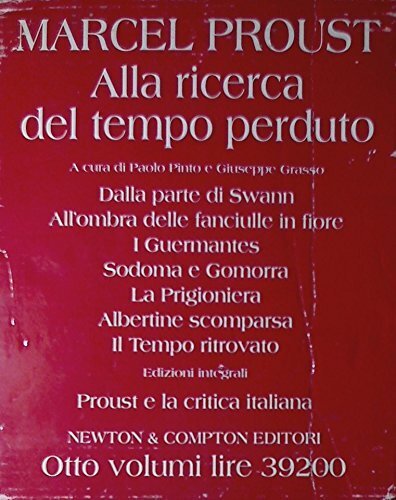 Cofanetto composto da 7 volumi (La Prigioniera di pp. 306; Sodoma e Gomorra di pp. 423; I Guermantes di pp. 450; Albertine scomparsa di pp. 211; Dalla parte di Swann di pp. 341; Ela critica italiana di pp. 338; All'ombra delle fanciulle in fiori di pp. 390). Tutti i volumi sono in buono stato, con pagine appena ombrate, tranne Dalla parte di Swann che ha le pagine più ingiallite e All'ombra delle fanciulle in fiori che ha il taglio appena sporco. Cofanetto ombrato e lievemente rovinato. paperback 8881836610 Molto buono (Very Good) .