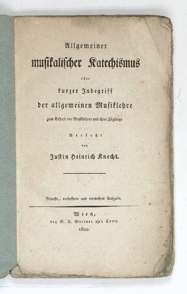 Allgemeiner musikalischer Katechismus oder kurzer Inbegriff der allgemeinen Musiklehre zum Behufe der Musiklehrer und ihrer Zöglinge. Neueste, verbesserte und vermehrte Auflage. | Libri antichi e moderni | Knecht, Justin Heinrich.