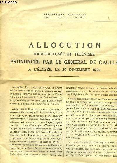 ALLOCUTION RADIODIFFUSEE ET TELEVISEE PRONONCEE PAR LE GENERAL DE GAULLE A L'ELYSEE, LE 20 DECEMBRE 1960 | Libri antichi e moderni | De Gaulle General