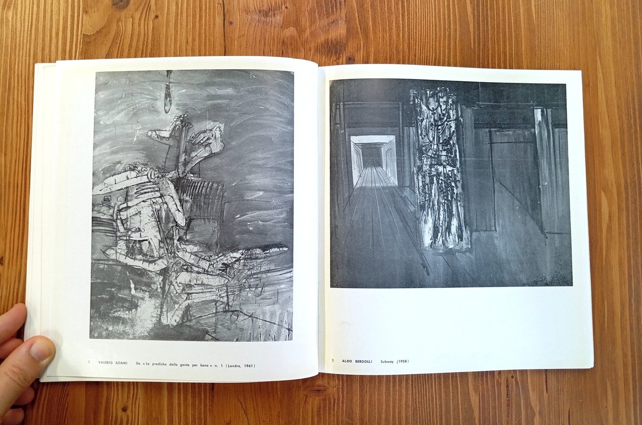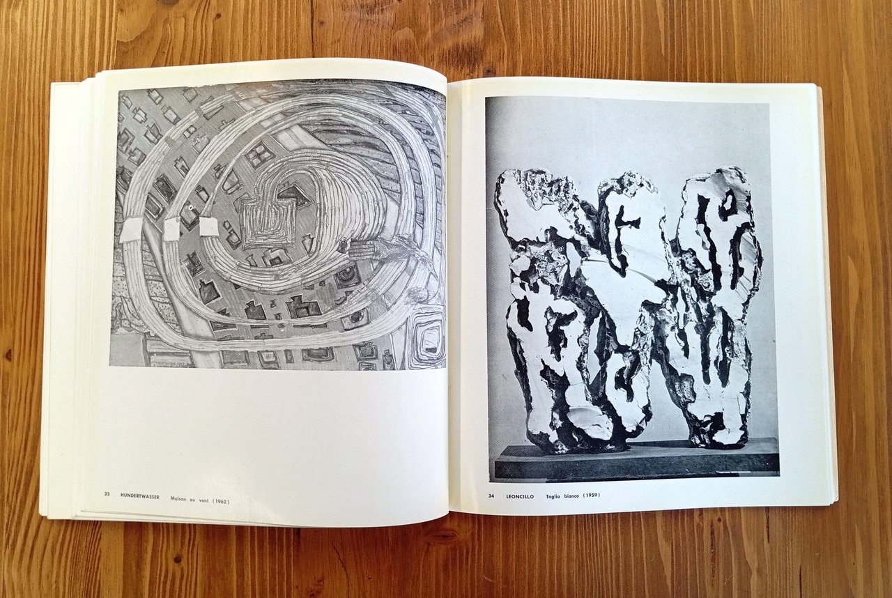 Catalogo di mostra: L'Aquila, Rassegna internazionale di architettura, pittura, scultura d'avanguardia, luglio-agosto 1962 -- Brossura editoriale di 120 pagine con 75 tavole in bianco e nero fuori testo. Scritti di R. Barilli, E. Battisti, A. Boatto, E. Sanguineti e con la partecipazione di opere di Alechinsky, E. Baj, A. Carena, P. Portoghesi, L. Quaroni, M. Rotella, Saby, Hundertwasser, et al. Segni d'uso al dorso e lievi tracce del tempo al piatto anteriore, nel complesso esemplare in buone-ottime condizioni di un catalogo piuttosto raro.