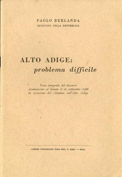 Alto Adige: problema difficile. | Libri antichi e moderni | Berlanda, Paolo.