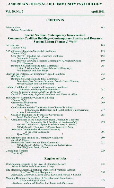 American Journal of Community Psychology : Apr 2001 : Vol 29 No 2