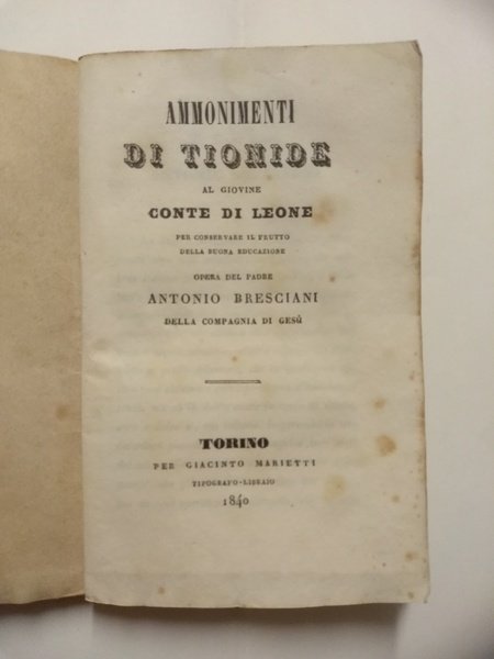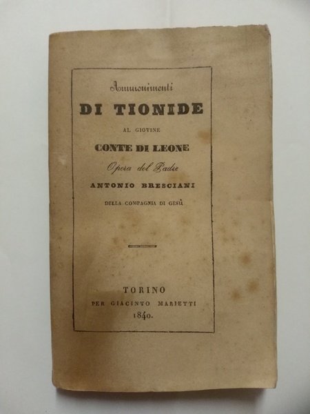 AMMONIMENTI DI TIONIDE AL GIOVANE CONTE DI LEONE. | Libri antichi e moderni | Antonio Bresciani