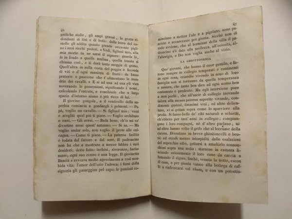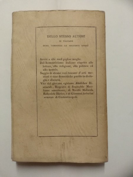 Un volumetto (15,5 cm) di VII-191 pagine. Brossura editoriale (con qualche brunitura). Molto buono. I precetti del religioso-filosofo gesuita (poi eretto da Gramsci a simbolo della reazione nell'Ottocento) tendono ad imporre ai giovani precetti di totale chiusura verso il mondo laico, verso gli stranieri e verso le idee nuove. La prima edizione è del 1838.