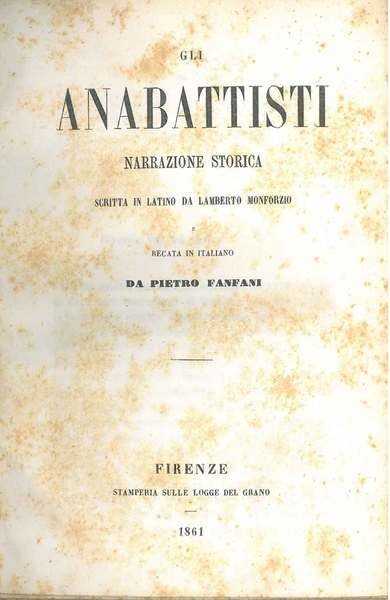 Anabattisti. Narrazione storica scritta in latino da Lamberto Monforzio | Libri antichi e moderni | Fanfani Pietro