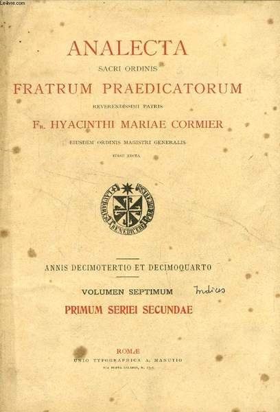 ANALECTA SACRI ORDINIS FRATRUM PRAEDICATORUM, ANNO XIII-XIV, INDICES | Libri antichi e moderni | Collectif