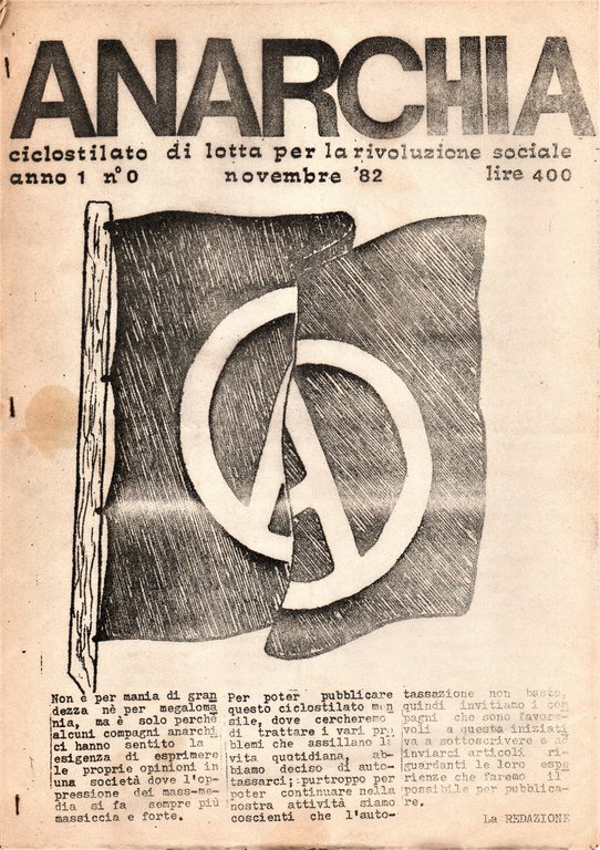 Anarchia. Ciclostilato di lotta per la rivoluzione sociale. Anno 1 N. 0 Novembre '82
