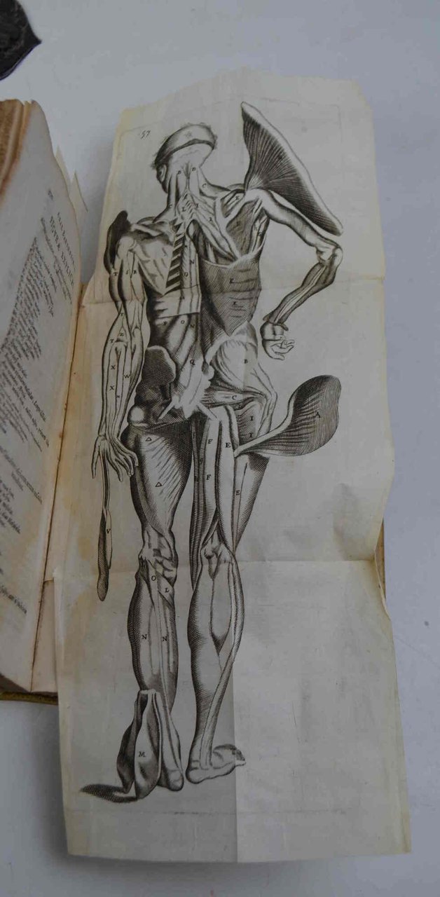 Cm. 18,5, pp. (32) 806 (20). Con antiporta figurata, ritratto dell'autore , moltissime incisioni in rame nel testo, spesso a piena pagina e 13 tavole ripiegate f.t. Legatura coeva in piena pergamena rigida, dorso a piccoli nervi con titoli manoscritti. Solo qualche piccolo forellino di tarlo alle ultime carte, peraltro esemplare genuino e ben conservato, con le incisioni assai fresche e senza danni alle tavole ripiegate. Bell'edizione di quest'opera celebre per la quantità e la qualità delle incisioni e stilata dal medico danese Thomas Bartholin (1616-1680).