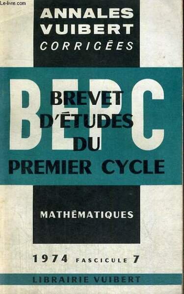 ANNALES VUIBERT CORRIGEES, BREVET D'ETUDES DU PREMIER CYCLE, MATHEMATIQUES, FASCICULE 7 | Libri antichi e moderni | Collectif