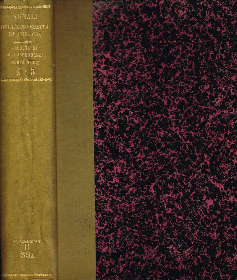 Annali dell'Università di Perugia. Pubblicazioni periodiche della facoltà di giurisprudenza. Nuova Serie volume IV, 1894. Vol.V, 1895 | Libri antichi e moderni |