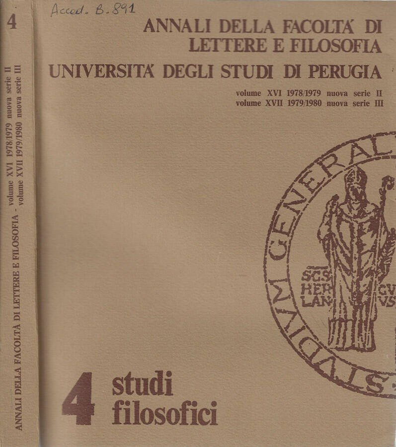 Annali della facoltà di lettere e filosofia Università degli studi di Perugia Volume XVI 1978/1979 nuova serie II volume XVII 1979/1980 nuova serie III