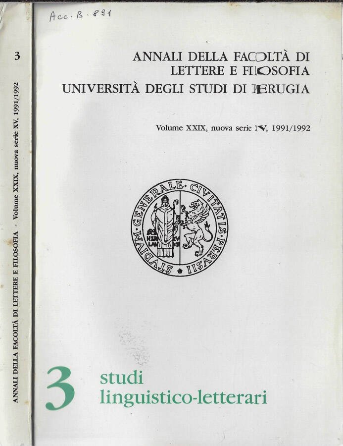 Annali della facoltà di lettere e filosofia Università degli studi di Perugia Volume XXIX, nuova serie XV, 1991/1992