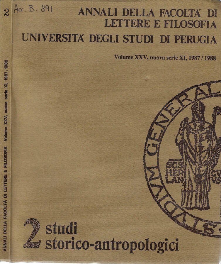 Annali della facoltà di lettere e filosofia Università degli studi di Perugia Volume XXV nuova serie XI, 1987/1988 | Libri antichi e moderni | Antonio Pieretti, Direttore Responsabile