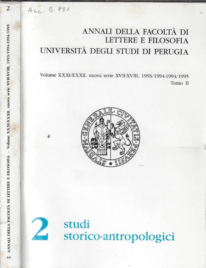 Annali della facoltà di lettere e filosofia Università degli studi di Perugia Volume XXXI-XXXII nuova serie XVII-XVIII, 1993/1994-1994/1995 tomo II | Libri antichi e moderni | Antonio Pieretti, Direttore Responsabile