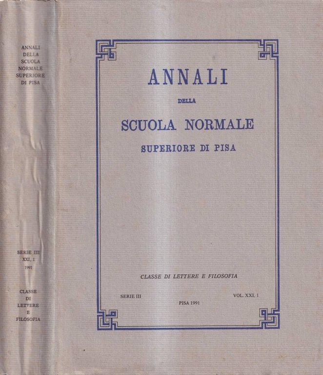 Annali della Scuola Normale Superiore di Pisa, serie III, vol. XXI, 1, 1991 | Libri antichi e moderni |