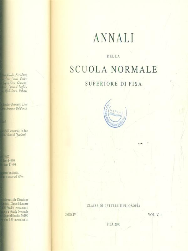 Annali della scuola normale superiore di Pisa. Serie IV - Vol V,1/2000 | Libri antichi e moderni | AA.VV.