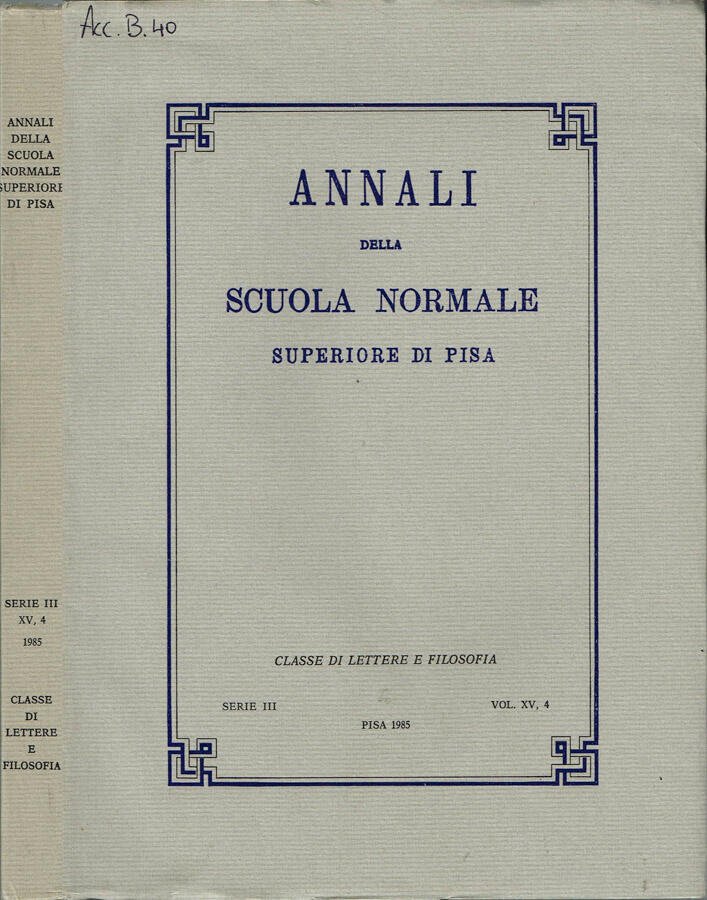 - Annali della Scuola Normale Superiore di Pisa - Classe di Lettere e Filosofia - Serie III