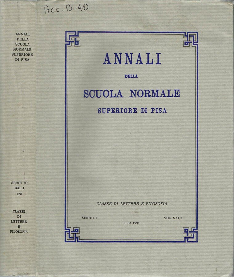 - Annali della Scuola Normale Superiore di Pisa - Classe di Lettere e Filosofia - Serie III