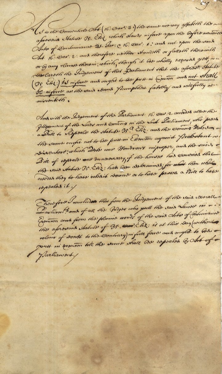 ANSWER (AN) to two pamphlets lately printed concerning the continuance of the Stat. 35: Eliz. Cap: 1. For enforceing sectaries non confermeing to abjure the Realme. For the satisfaction of a person of quality who desired the opinion of a Lawyer [.].