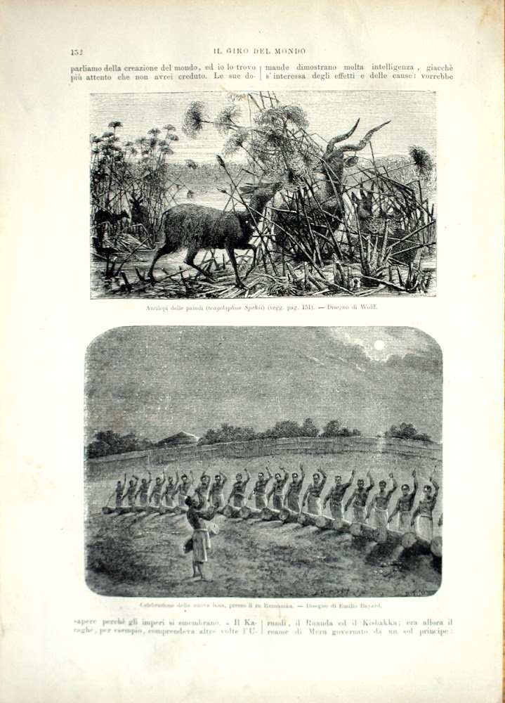 Antilopi delle paludi (tragelaphus Spekii), Celebrezione della nuova luna. Stampa 1864 | Libri antichi e moderni | ,