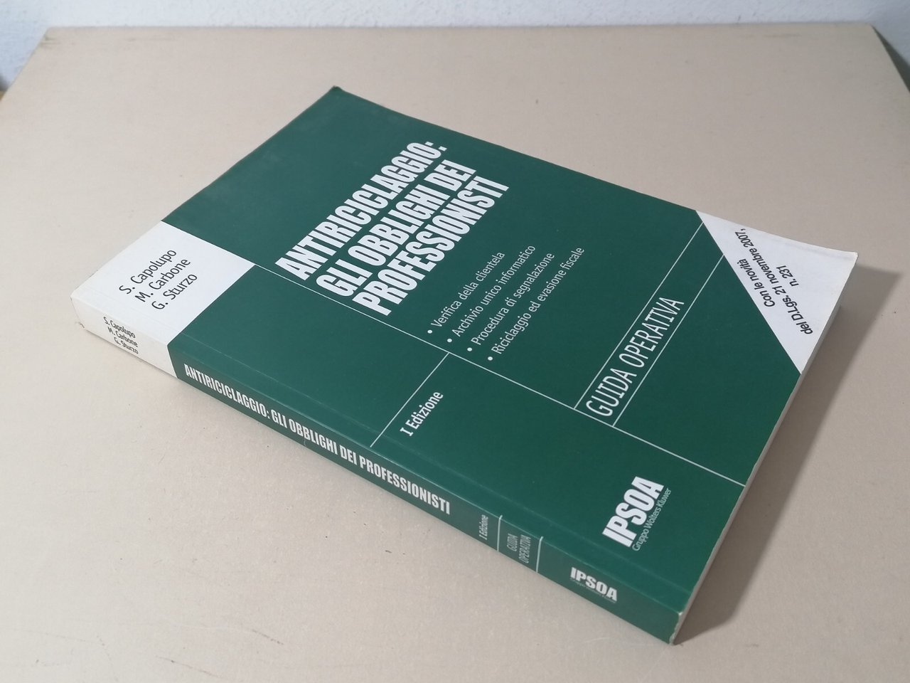 Antiriciclaggio: gli Obblighi dei Professionisti Prima Edizione IPSOA Guida 2008 | Libri antichi e moderni | Capolupo / Carbone / Sturzo