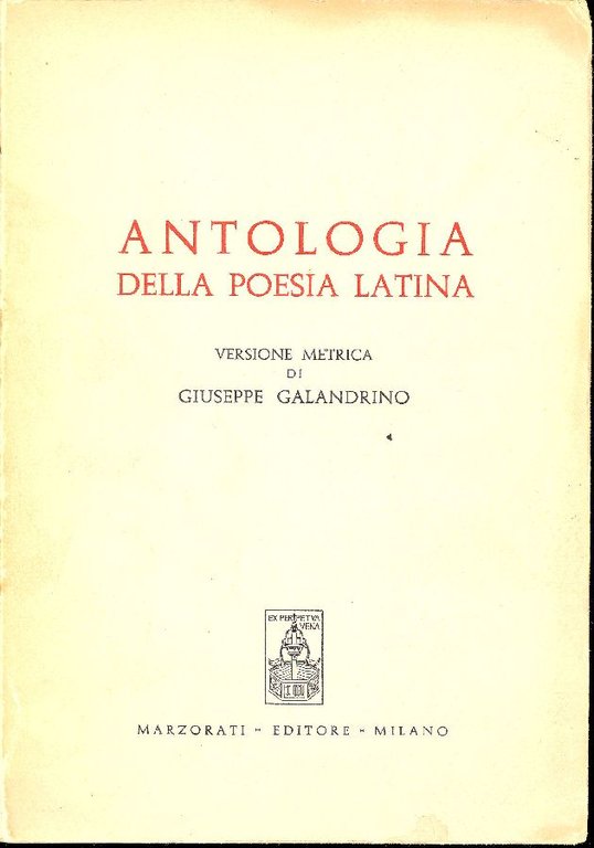 Antologia della poesia latina | Libri antichi e moderni | GALANDRINO Giuseppe (versione metrica di),
