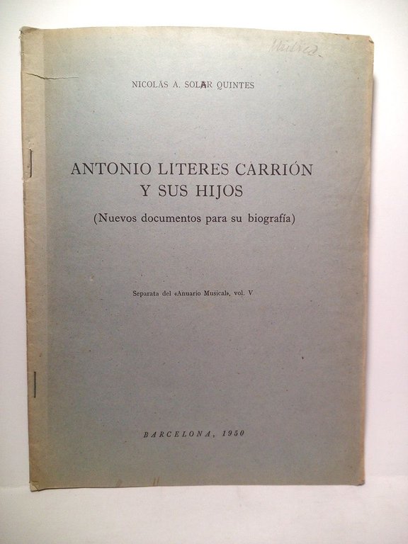 Antonio Literes Carrión [1673-1747] y sus hijos: Nuevos documentos para su biografía | Libri antichi e moderni | Solar Quintes, Nicolás A.