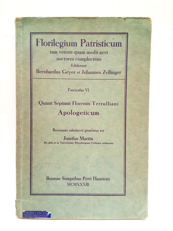Coloniae: Bonnae Sumptibus Petri Hanstein, 1933.- [2 h.], 176 p.; 4º (23,4 x 15,7 cm); Texto en latín; Cartulina Ed.- (Florilegium Patristicum tam veteris quam medii aevi auctores complectens. Ediderunt Bernhardus Geyer et Johannes Zellinger. Fasciculus VI.).* Cubiertas ligeramente ajadas. Por lo demás muy bien. HISTORIA DE LA IGLESIA CATÓLICA, PATRÍSTICA Y PENSAMIENTO CATÓLICO EN GENERAL