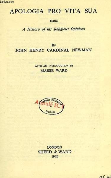 APOLOGIA PRO VITA SUA, BEING A HISTORY OF HIS RELIGIOUS OPINIONS
