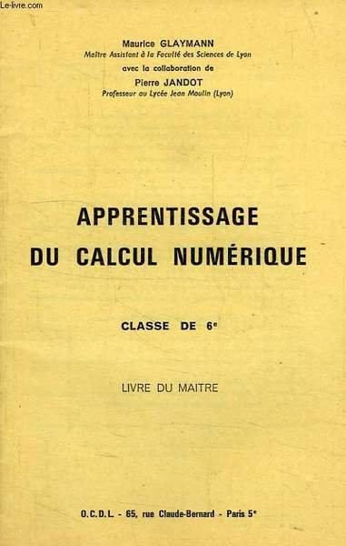 APPRENTISSAGE DU CALCUL NUMERIQUE, CLASSE DE 6e, LIVRE DU MAITRE | Libri antichi e moderni | Glaymann Maurice, Jandot Pierre