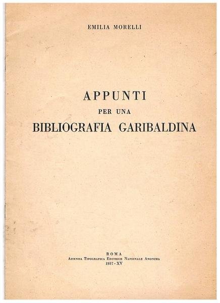 Appunti per una bibliografia garibaldina. Estratto. | Libri antichi e moderni | Morelli Emilia.