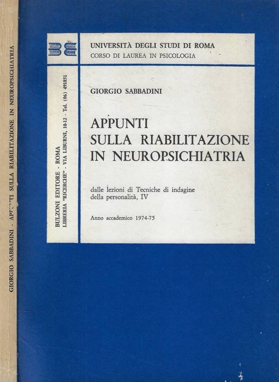 Volume promosso dall'Università degli Studi di Roma, corso di Laurea in Psicologia. Dalle lezioni di Tecniche di indagine delle personalità, IV, anno accademico 1974-75. Brossura in cartoncino, leggermente brunita dal tempo e con alcune piccole abrasioni. Pagine appena brunite, salde, con ampio margine. Numero pagine 201.