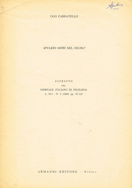 APULEIO MORI' NEL 163-164? | Libri antichi e moderni | Ugo Carratello