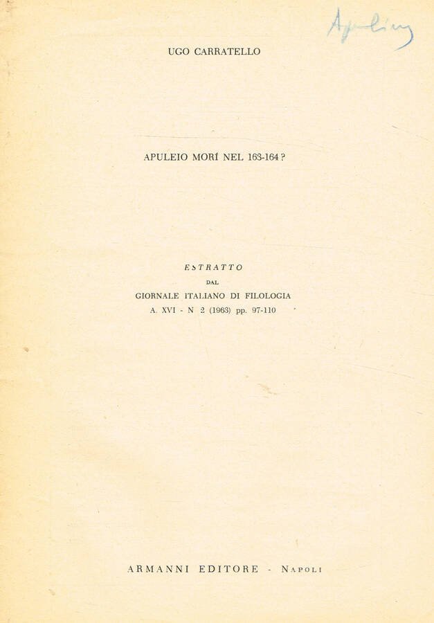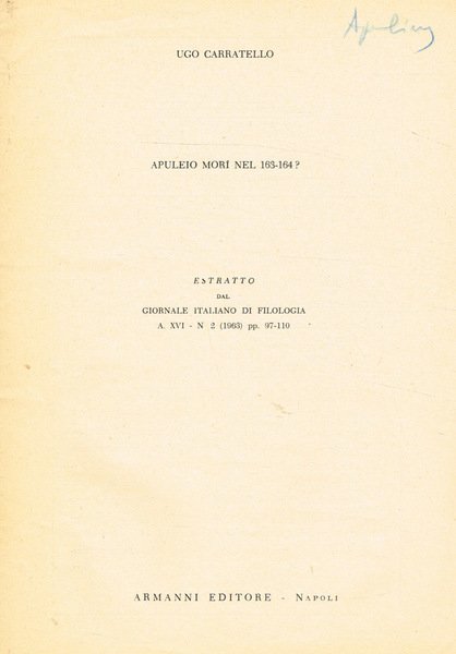 APULEIO MORI NEL 163-164? | Libri antichi e moderni | Ugo Carratello