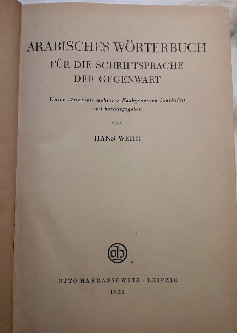 In 8', mz. tela ed., pp. XI+497, Unter Mitarbeit mehrerer Fachgenossen bearbeitet und herausgegeben von Hans Wehr; abrasioni e segni d'uso alla cop. strappo alla testa del dorso, interno in buono stato, lievi bruniture e segni del tempo, leggero sentore di cantina. ***Due to bureaucratic reasons, books dated over 70 years old cannot be immediately exported, please contact us before placing the order.***