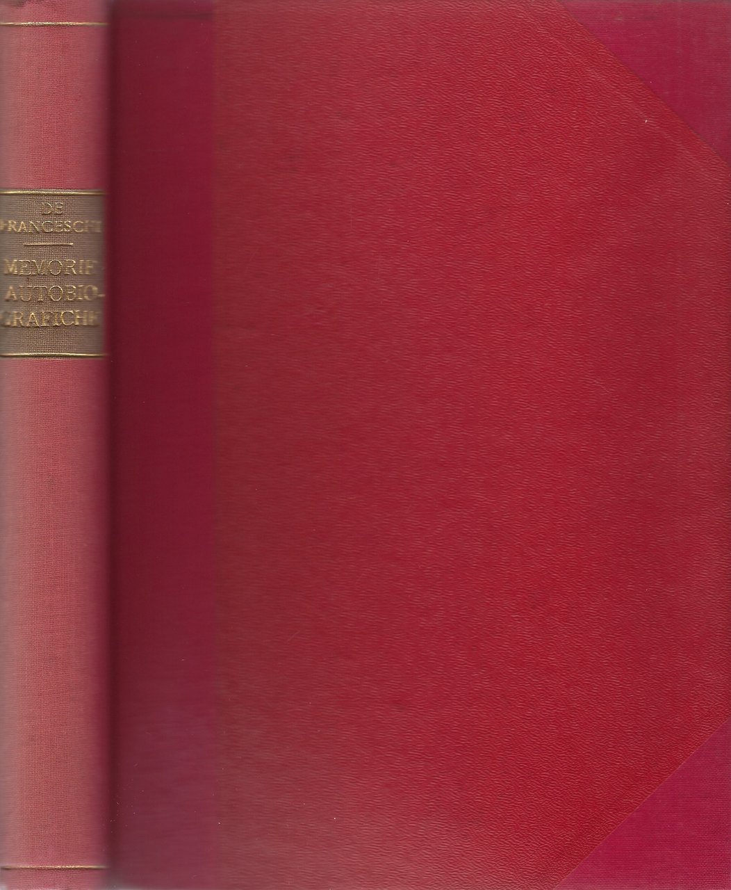 Rilegatura artigianale in mezza tela rossa con angoli, titoli in oro su tassello al dorso. Risulta un po' usurata e leggermente sbiadita al dorso.