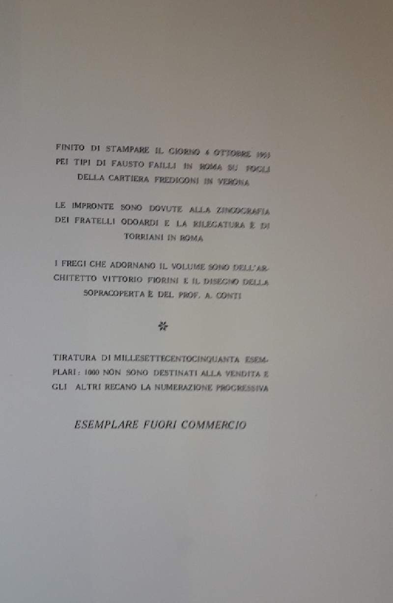 In 4', tela ed. con ftregio al paitto e tit al dorso, sovrac., pp. 236, ill. in n. n.t.; segni d'uso, pieghe e strappetti ai margini dellla sovrac., lievi fioriture al taglio sup. cop. e interni in buono stato. Edizione fuori commercio. ***Due to bureaucratic reasons, books dated over 70 years old cannot be immediately exported, please contact us before placing the order.***