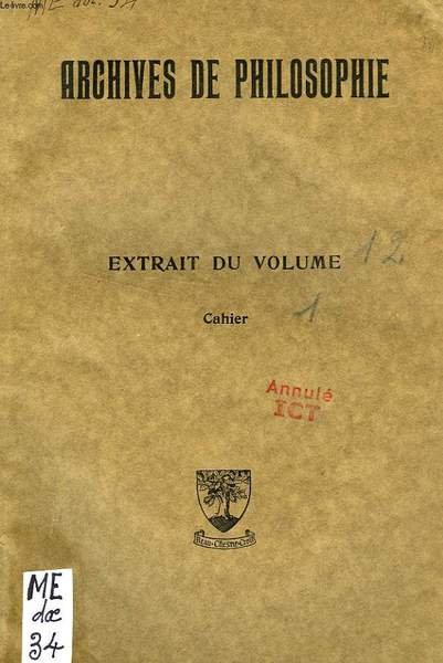 ARCHIVES DE PHILOSOPHIE, EXTRAIT DU VOLUME 12, CAHIER 1, PERSONNE ET HUMANITE