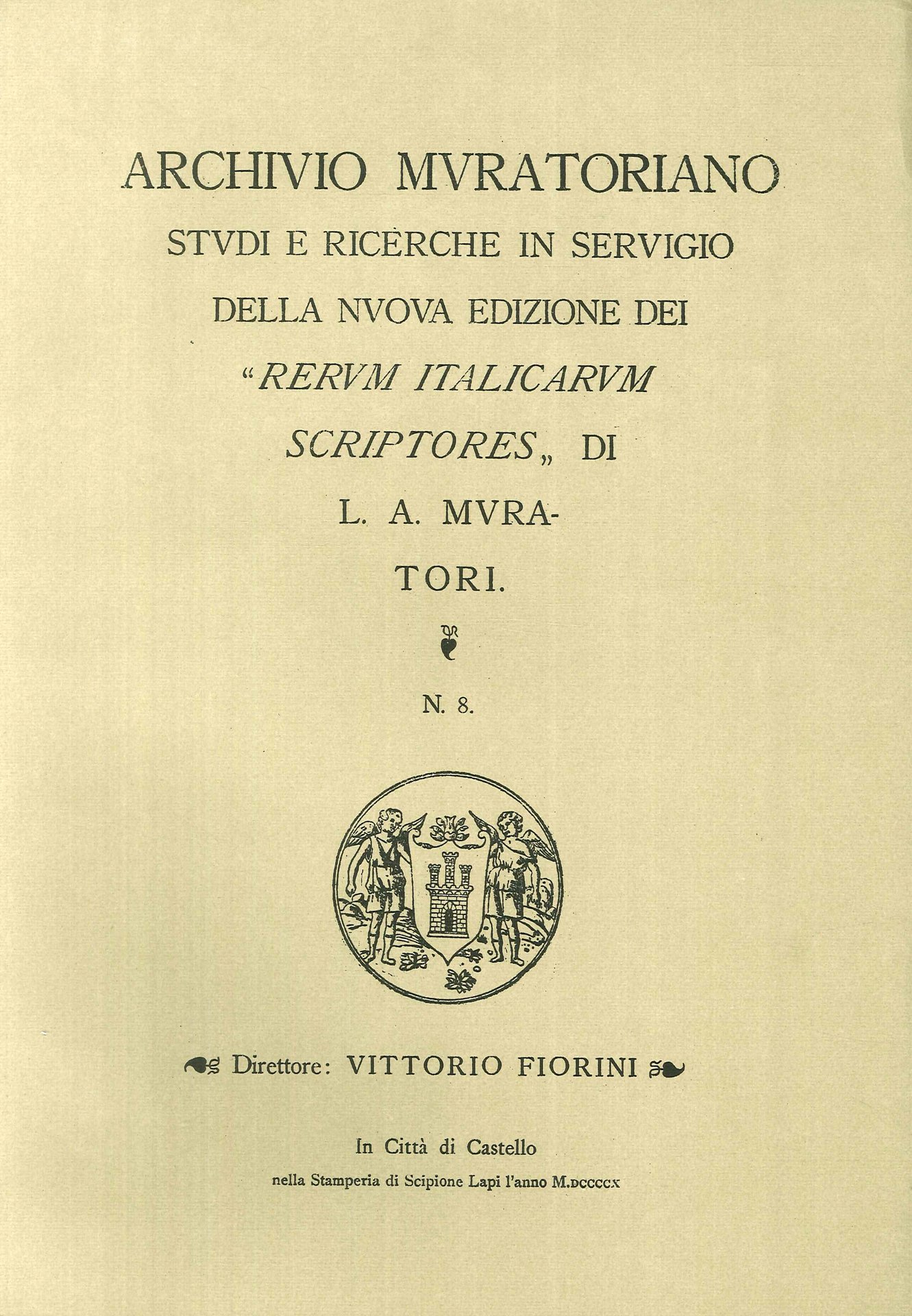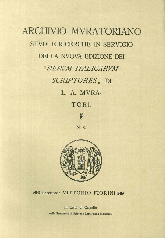 Archivio Muratoriano. Studi e ricerche in servigio della nuova edizione dei" Rerum Italicarum Scriptores" di L. A. Muratori. N. 8